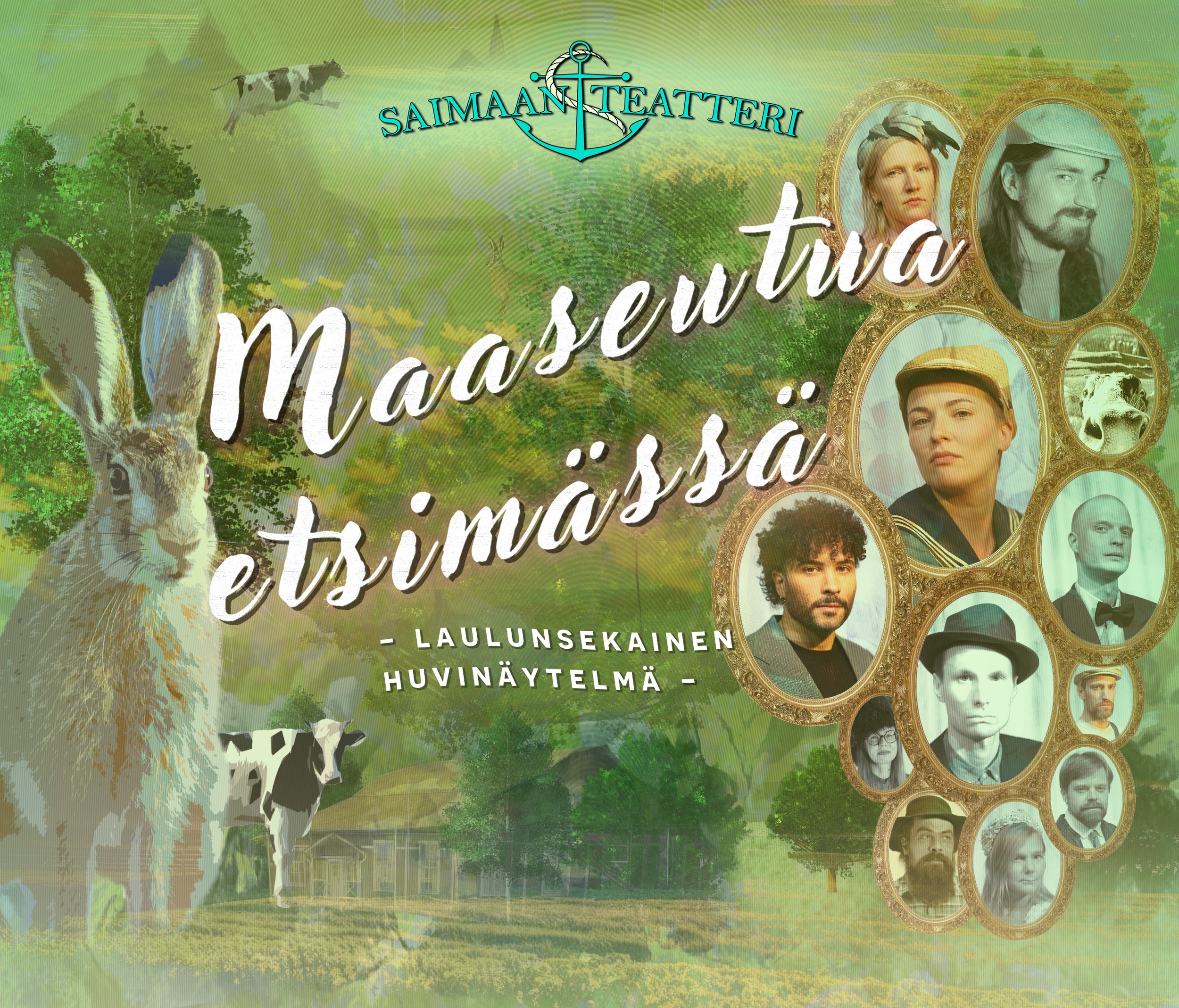 Työhön sisältyi esityksen Maaseutua etsimässä (2023) markkinointimateriaalin visuaalinen suunnittelu ja toteutus: julkistuskuvitus, mainokset paperilehtiin ja digi-alustoille, julisteen, flyereiden ja käsiohjelman taitto.